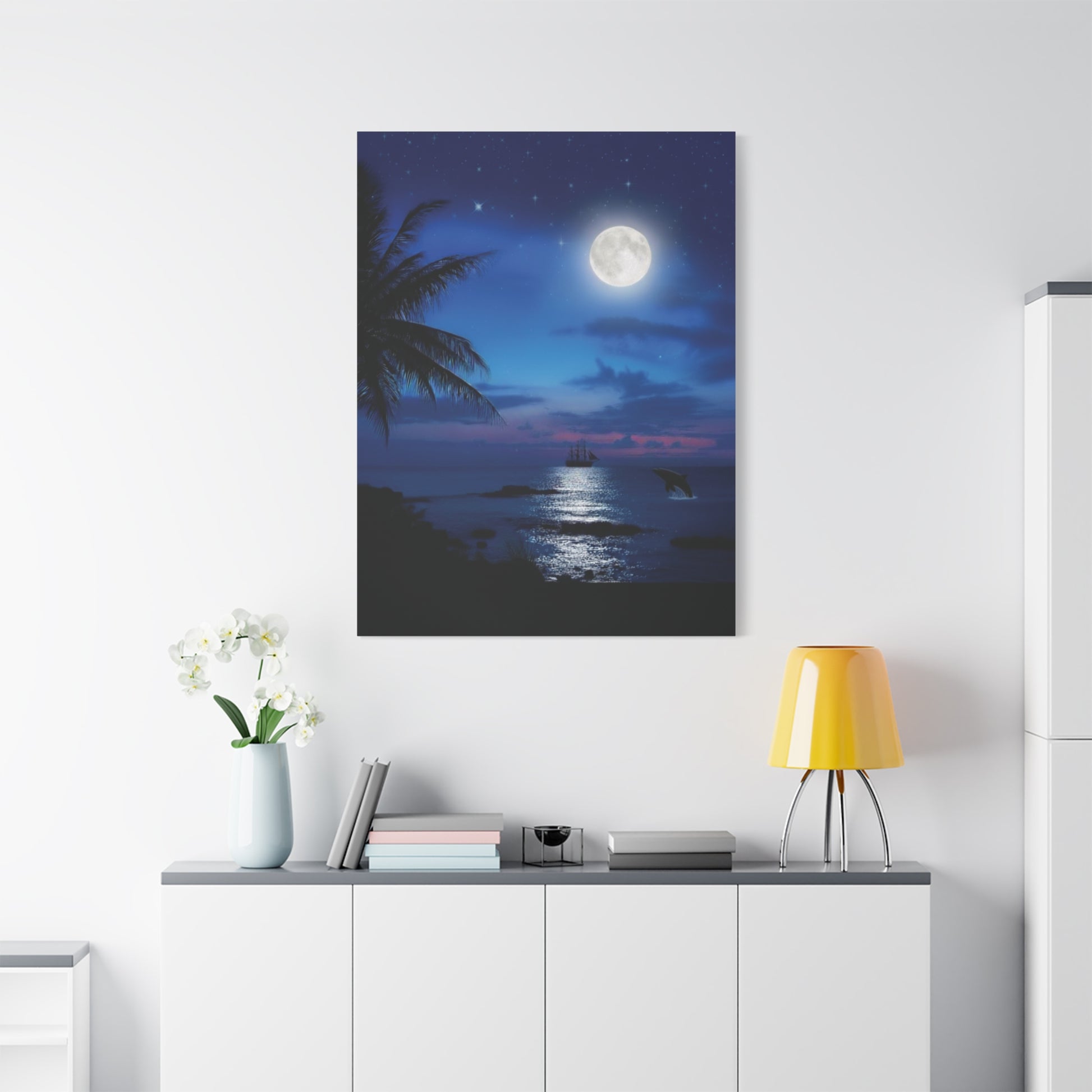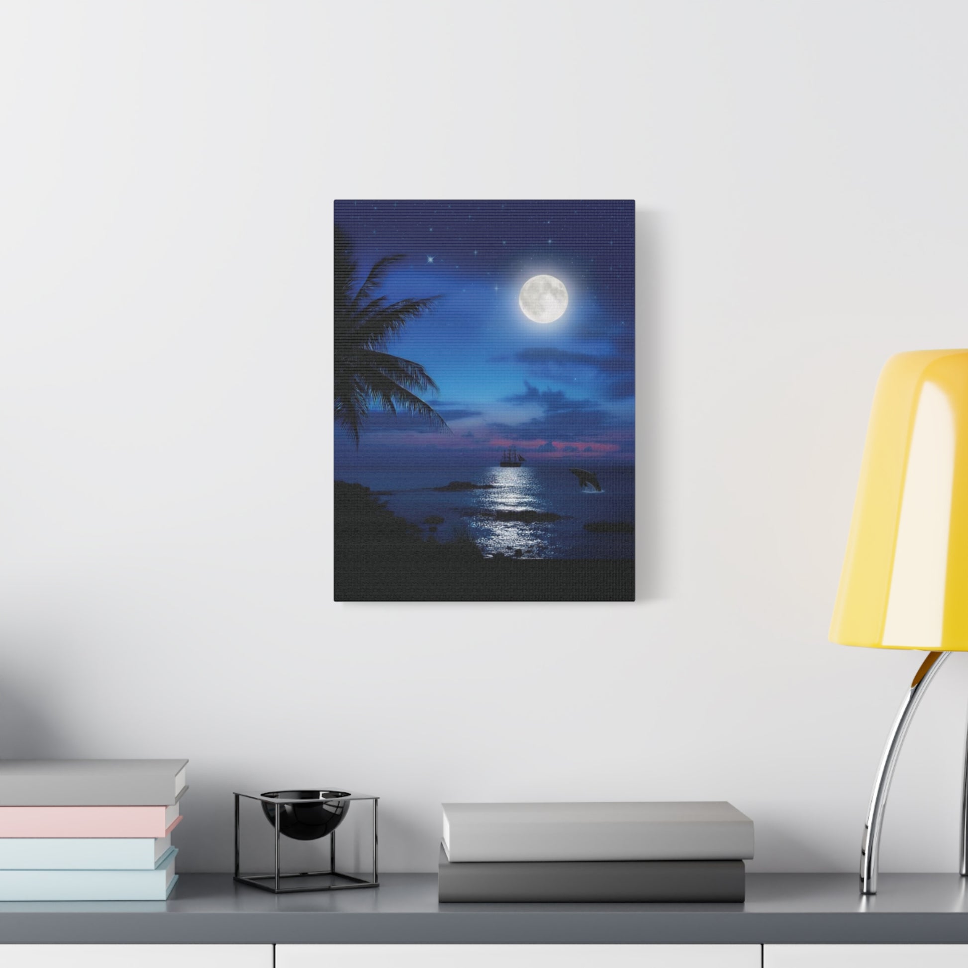 Blue Sky Moon lit Tropical Escape Canvas Wall Art
