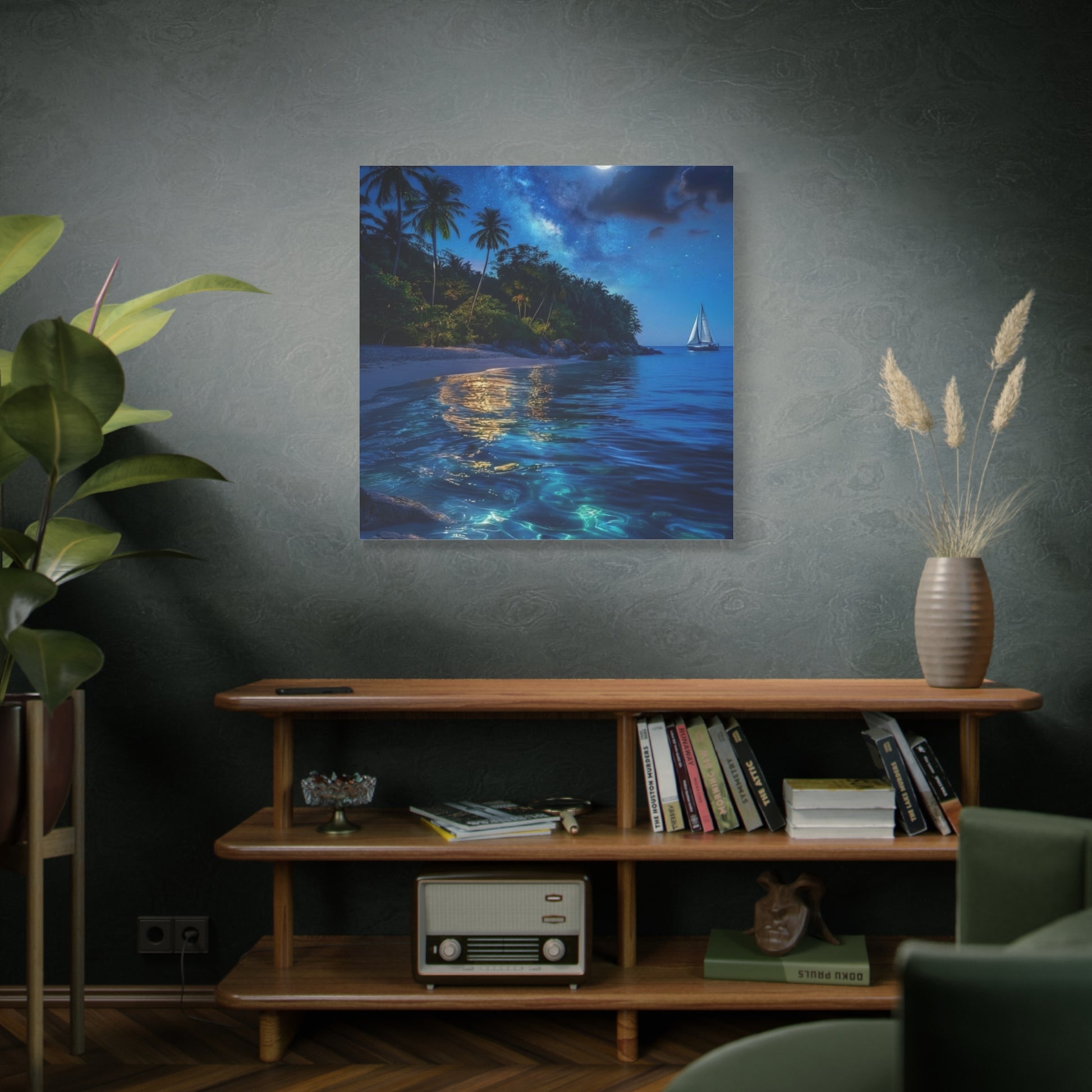 Moonlit Tropical Beach Canvas Wall Art — Night Sail Ocean Landscape